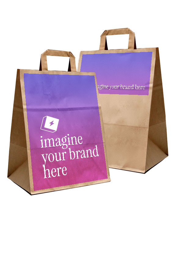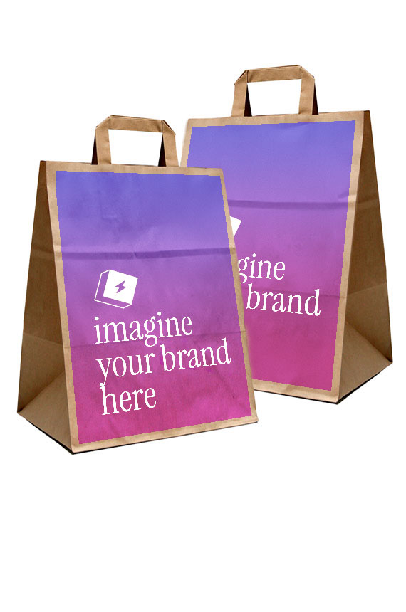 Large flat handle bags. Available blank or custom printed (MOQ 100).